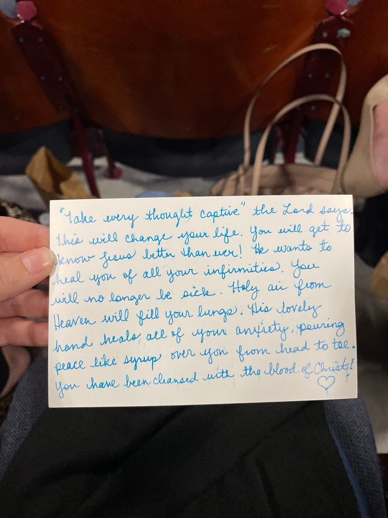 I’ve said this a lot throughout this blog, but it’s true. It’s a memory I’ll never forget. I will never be able to say thank you enough to the people who endlessly showed up for me during this time. I hope you realize that it never went unnoticed. Your willingness to show Christ’s love to me saved me.